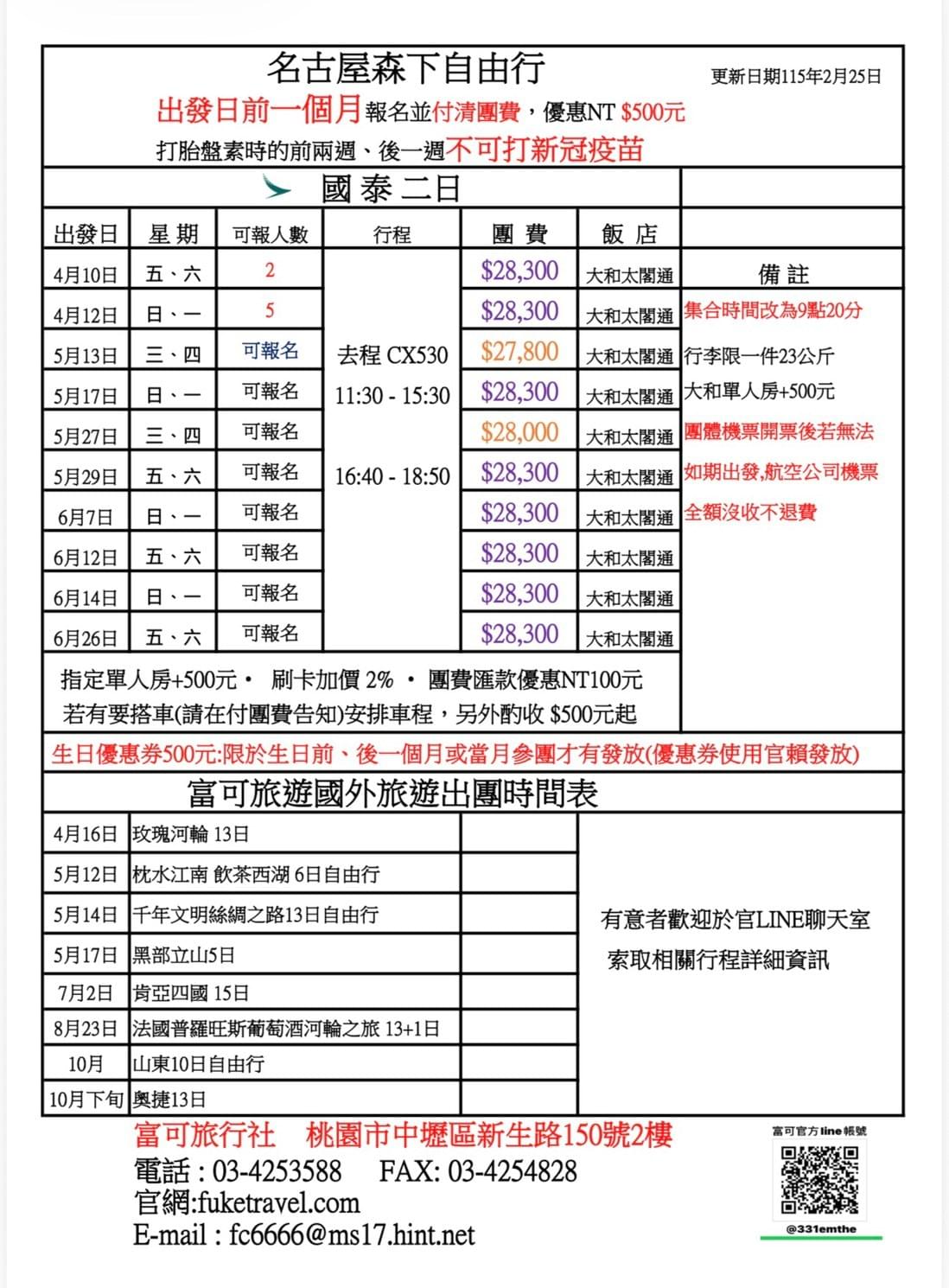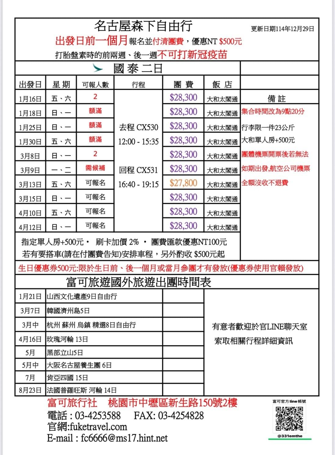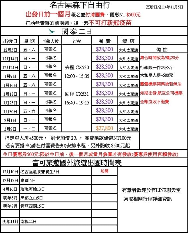 © 2023 富可旅遊 富可旅行社 名古屋兩天一夜 MSC榮耀號 滑雪 西班牙 葡萄牙 玫瑰河輪 日光東照宮 鬼滅之刃蘆之牧溫泉 森下醫院胎盤素 藏王冰樹 豬代苗湖 大內宿 銀山溫泉 文翔館