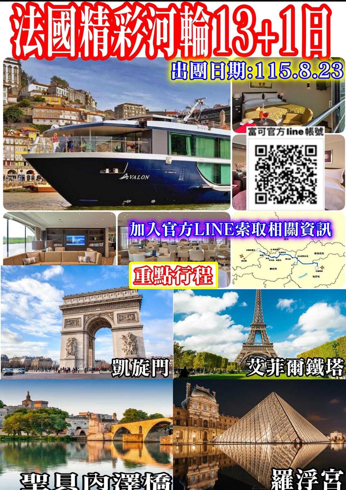 感謝貴賓搭乘艾凡隆河輪,悠遊於風光明媚的隆河流域,在南法陽光與葡萄園景致陪伴下,於古羅馬風情濃厚的亞爾下船,為旅程揭開文化與藝術交織的序章。隨後前往馬賽,搭乘國內班機飛往浪漫之都巴黎。抵達後安排精緻晚餐,在夜色與燈光映照下感受巴黎獨有的優雅氛圍,夜宿巴黎,為法國之旅畫下從南法延伸至花都的完美一頁。